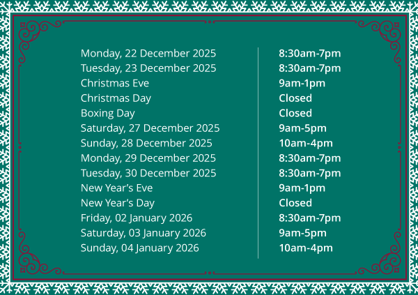 Please find our festive opening hours for 2026 below.